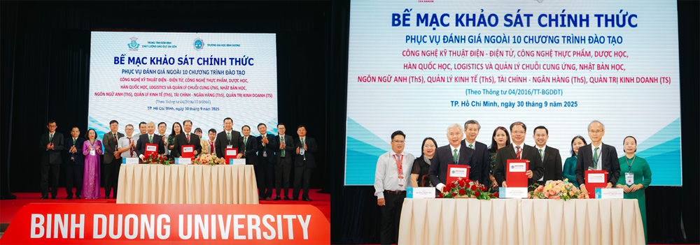 Trong khuôn khổ kế hoạch kiểm định chất lượng giáo dục, Trường Đại học Bình Dương đã phối hợp cùng Trung tâm Kiểm định chất lượng giáo dục Sài Gòn tổ chức khảo sát chính thức phục vụ đánh giá ngoài 10 chương trình đào tạo, bao gồm 6 chương trình đào tạo trình độ đại học và 4 chương trình đào tạo trình độ sau đại học. Hoạt động diễn ra từ ngày 27 đến ngày 30 tháng 9 năm 2025, tại cơ sở chính của Trường Đại học Bình Dương, tọa lạc số 504 Đại lộ Bình Dương, phường Phú Lợi, Thành phố Hồ Chí Minh; với sự tham gia của Đoàn chuyên gia đánh giá ngoài (ĐGN) có kinh nghiệm và uy tín trong lĩnh vực đảm bảo chất lượng giáo dục đại học.